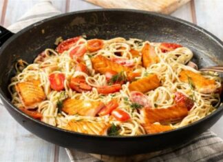 Η συνταγή για μακαρόνια με σολομό και βότκα είναι πανεύκολη, απλή και σίγουρα θα σας κλέψει την καρδιά μόλις την δοκιμάσετε.Με την ευκαιρία, δείτε επίσης: Απίστευτη συνταγή: Μακαρόνια με λευκή σάλτσα από κάσιουςΠρόκειται για ένα ιδιαίτερο πιάτο που όλοι και, ιδιαίτερα, οι λάτρεις της μακαρονάδας θα λατρέψουν σίγουρα.500 γρ. σπαγγέτι250 γρ. φρέσκο σολομό, χωρίς δέρμα και κόκκαλα50 ml βότκα2 φρέσκα ...