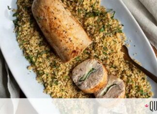 Γεμιστή μπαλοτίνα κοτόπουλου και πλιγούρι από τον Άκη Πετρετζίκη. Συνταγή για ρολό με μοτσαρέλα, γαλοπούλα και σπανάκι.Διάβασε περισσότερα στο akispetretzikis.com