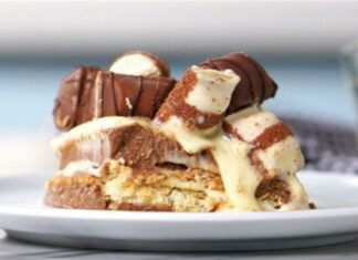 Οι λάτρεις της σοκολάτας και των φουντουκιών θα λατρέψουν αυτό το γλυκό ψυγείου με Kinder Bueno. Στην Αμερική χρησιμοποιείται ο όρος τράιφλ για να περιγράψει ένα εύκολο γλυκό, αλλά εμείς το λέμε απλά…...