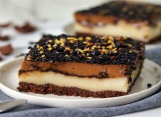 Δροσερό γλυκό ψυγείου με σοκολάτα, βανίλια και δημητριακά έτοιμο σε 3′