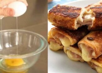 Τέλειες αυγοφέτες ρολό με τυρί του τοστ και ζαμπόν, έτοιμες σε 5 λεπτά
