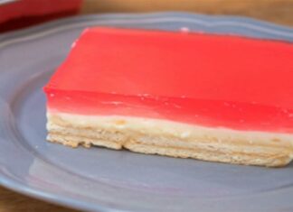 Μαμαδίστικο γλυκό ψυγείου με ζελέ, κρέμα και μπισκότα (Video)