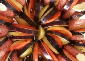 «Έργο τέχνης» στην κουζίνα: Μπιφτέκια φούρνου με ντομάτα, μελιτζάνα και πατάτα