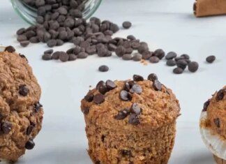 Έτοιμα σε 1′ χωρίς μίξερ – Απολαυστικά μπανάνα muffins χωρίς ζάχαρη με κομματάκια σοκολάτας