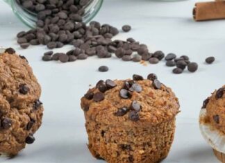 Έτοιμα σε 1′ χωρίς μίξερ – Απολαυστικά μπανάνα muffins χωρίς ζάχαρη με κομματάκια σοκολάτας