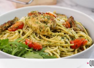 Σπαγγέτι με πανσέτα, ντοματίνια και πέστο βασιλικού