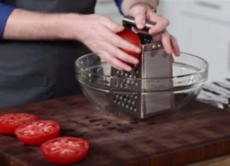 Παίρνει ολόκληρες τις ντομάτες και τις τρίβει στον τρίφτη. Όταν δείτε το λόγο θα...