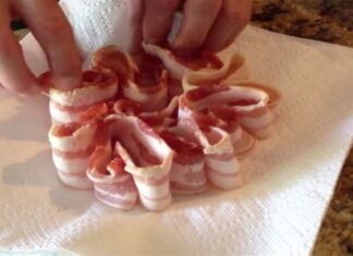 Παίρνει κομμάτια μπείκον και φτιάχνει ένα λουλούδι…Το αποτέλεσμα; Μαγικό!