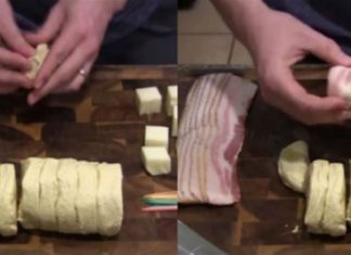 Γεμίζει κομματάκια ζύμης με τυρί και τα τυλίγει με μπέικον – Θα γλείφετε τα...
