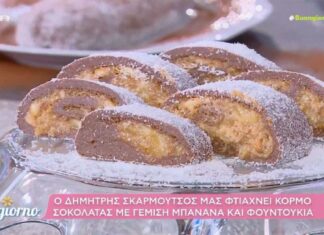 Ο Δημήτρης Σκαρμούτσος μας καλωσόρισε στην κουζίνα της εκπομπής Buongiorno φτιάχνοντας κορμό σοκολάτας με γέμιση μπανάνα και φουντούκια. Ακολουθήστε προσεκτικά τις οδηγίες του Δημήτρη Σκαρμούτσου και καλή σας απόλαυση!ΔΕΙΤΕ ΤΟ ΒΙΝΤΕΟ ΕΔΩ