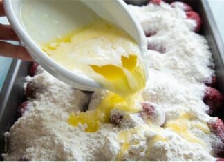 Ρίχνει λιωμένο βούτυρο πάνω σε φράουλες και προσθέτει 3 ακόμα υλικά – Γλυκιά αμαρτία!
