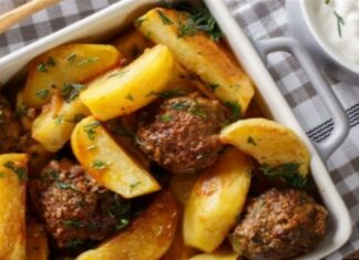 Απολαυστική συνταγή: Αφράτα μπιφτέκια με λεμονάτες πατάτες φούρνου με μπύρα