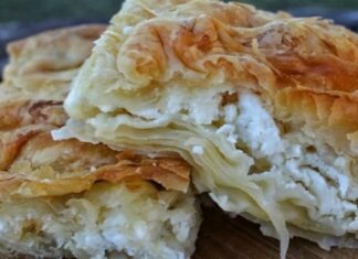 Τυρόπιτα με πανεύκολο χειροποίητο φύλλο σφολιάτας και γέμιση από σιμιγδαλόκρεμα με τυρί!