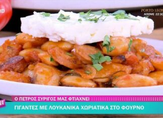 Από τις πιο παραδοσιακές συνταγές: Γίγαντες με λουκάνικα χωριάτικα στον φούρνο από τον Πέτρο...