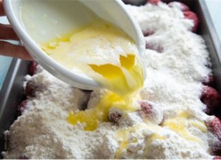 Ρίχνει λιωμένο βούτυρο πάνω σε φράουλες και προσθέτει 3 ακόμα υλικά – Γλυκιά αμαρτία!