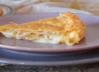 Τυρόπιτα σφολιάτας με καραμελωμένα κρεμμύδια και τραγανό μπέικον! (Video)