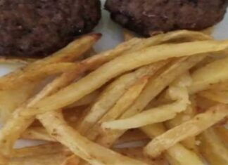 Αφράτα μπιφτέκια με πατάτες φούρνου σαν τηγανητές