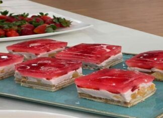 Γλυκό ψυγείου με γιαούρτι και ζελέ φράουλα χωρίς ζάχαρη