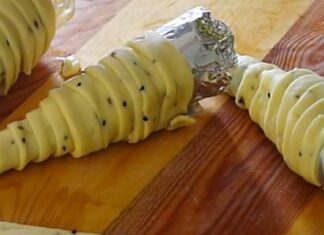 Γύρω από ένα αλουμινόχαρτο τυλίγει σε σχήμα κώνου ένα ζυμάρι -Το τελικό αποτέλεσμα;