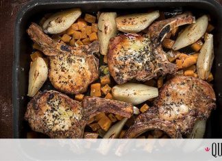 Χοιρινές μπριζόλες με γλυκοπατάτες και αχλάδια από τον Άκη Πετρετζίκη