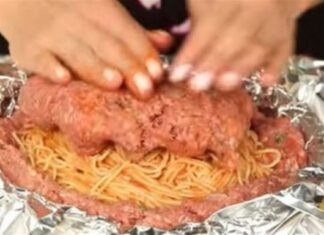 Πιέζει σε αλουμινόχαρτο κιμά και ρίχνει μέσα μακαρόνια – Θα σας τρέχουν τα σάλια